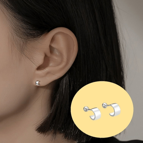 【A&R】韓版s999純銀高冷C型款轉珠耳環