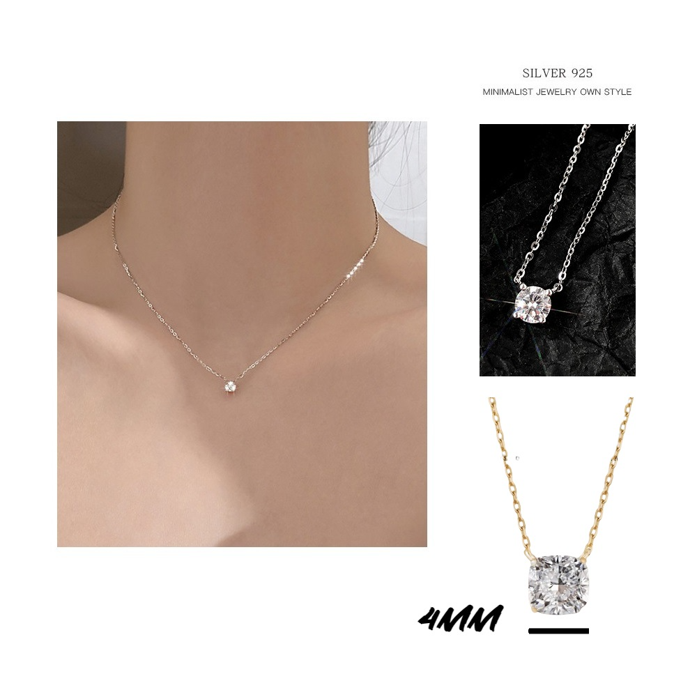【A&R】s925純銀秀氣風14K金鋯石鎖骨項鏈 兩色任選
