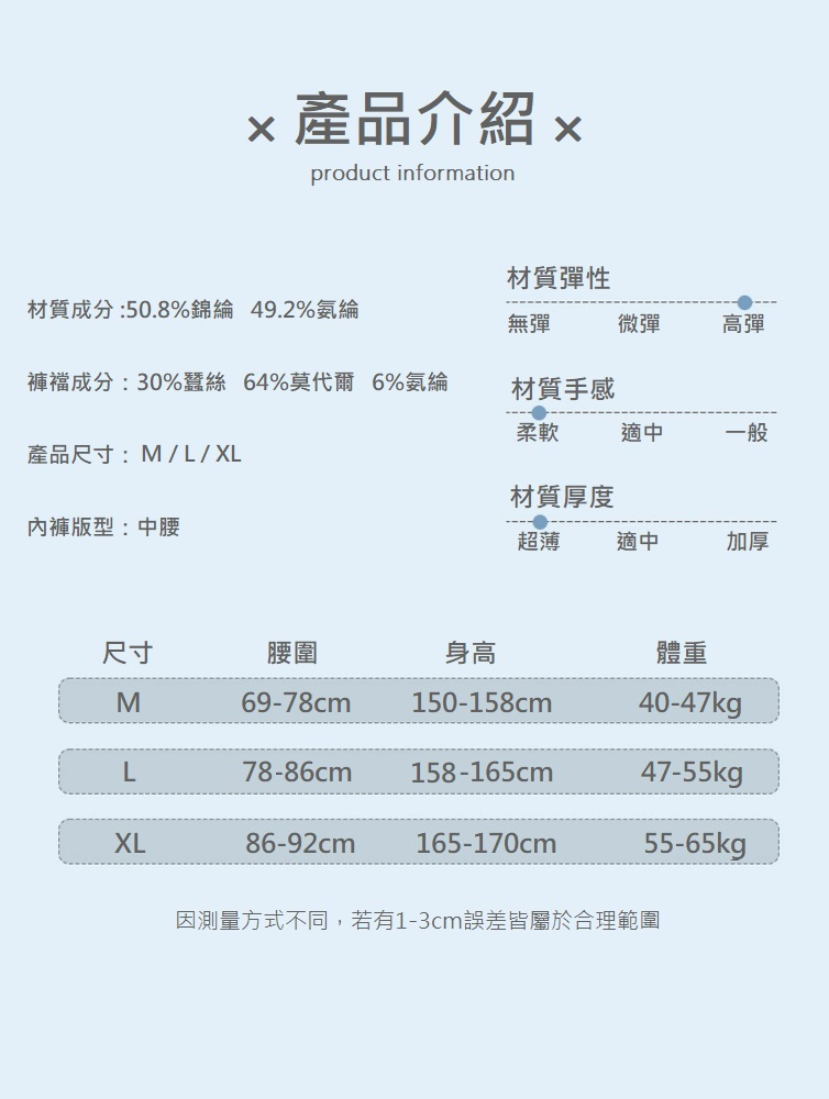 內褲褲襠成份:30%蠶絲、64%莫代爾、6%氨綸