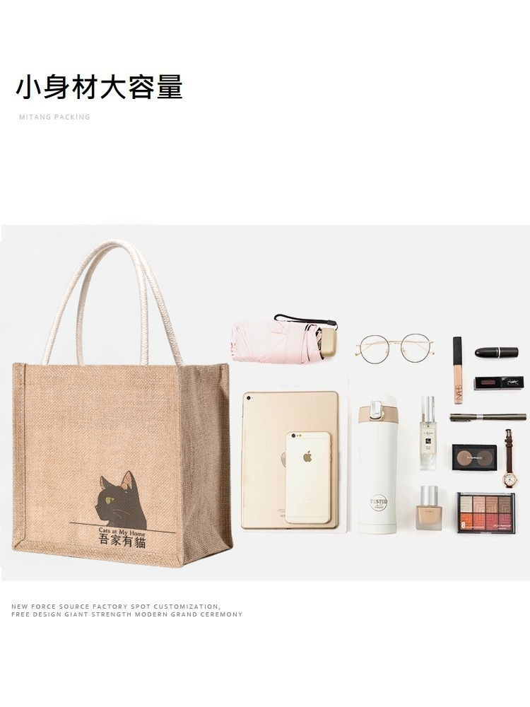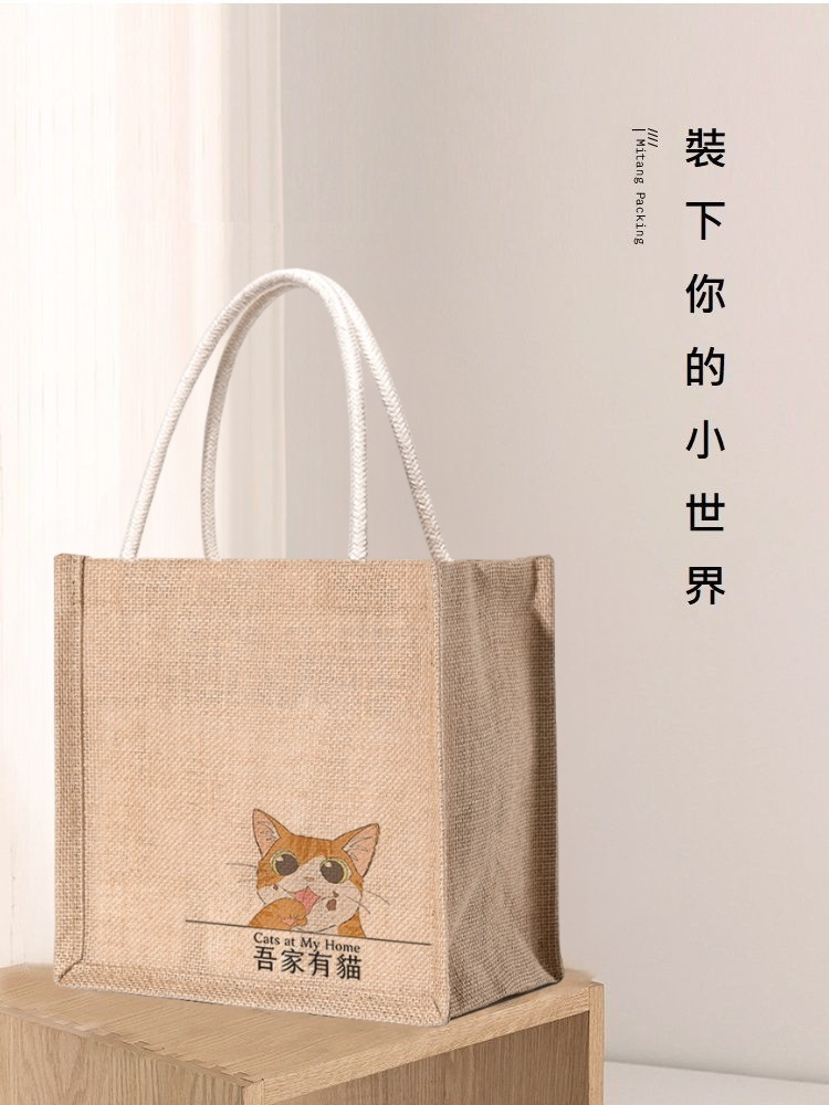 產品尺寸 : 棉麻手提繩26x26x18cm、提手長度17cm