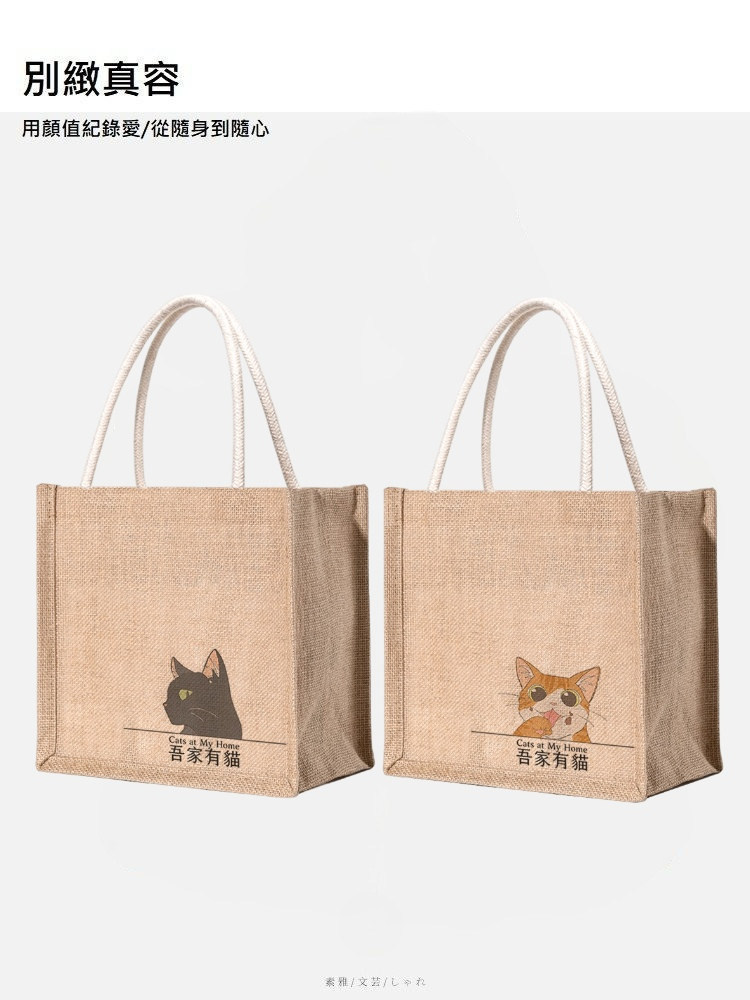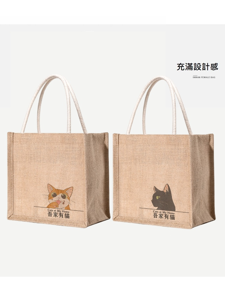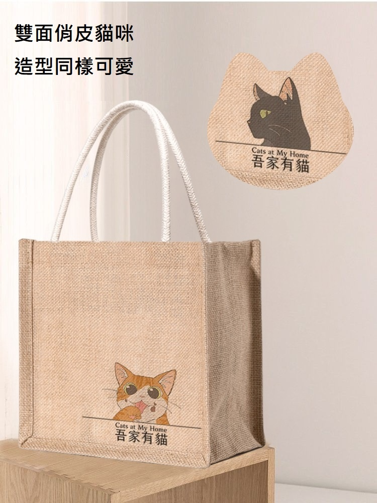 【A&R】吾家有貓無印風單貓雙面款手提袋 中款