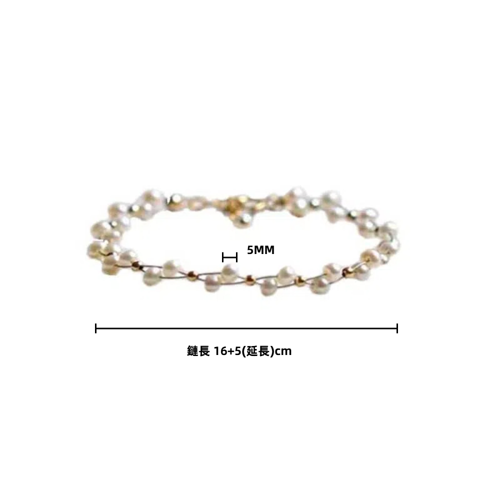 尺寸 : 天然珍珠5mm、彈性繩 鏈長約16+5(延長)cm
