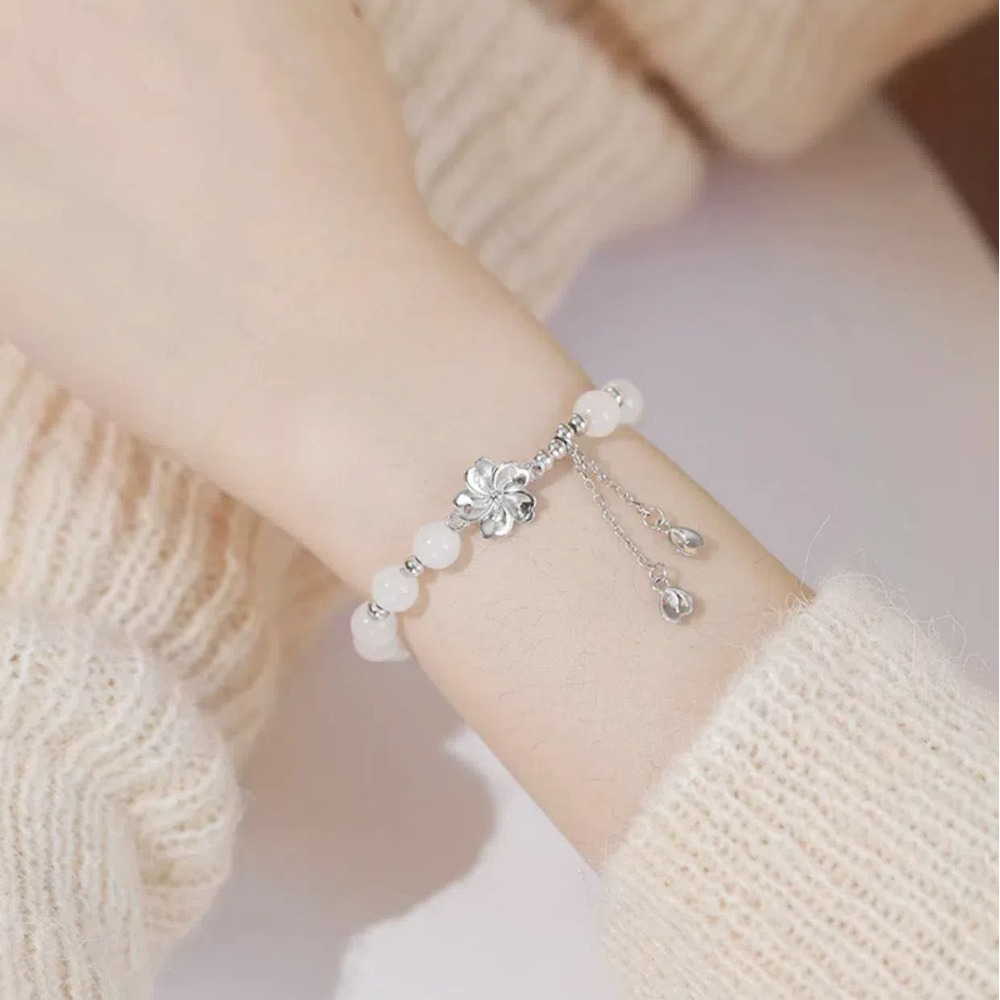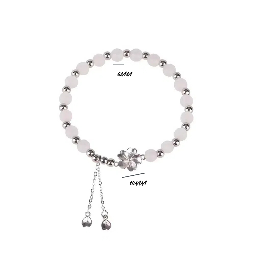 【A&R】S925純銀小桃花和田玉銀珠水晶手鍊附精美禮盒
