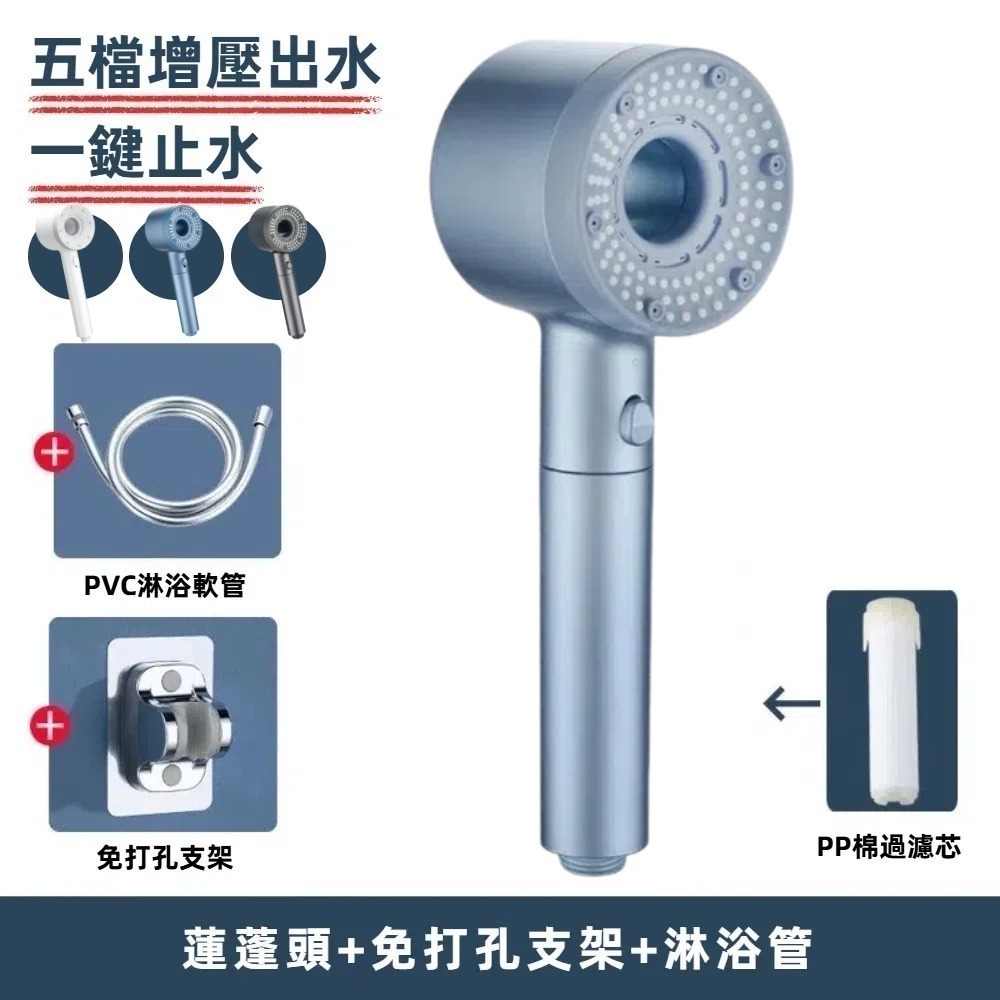 【A&R】三件組 五段式增壓蓮蓬頭 四色任選