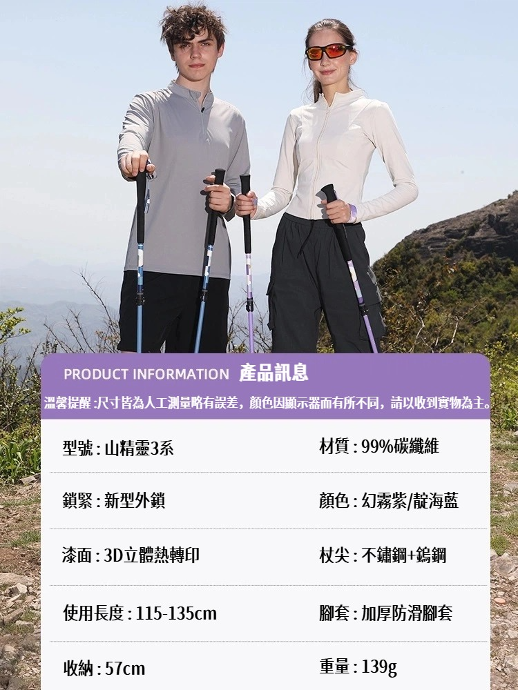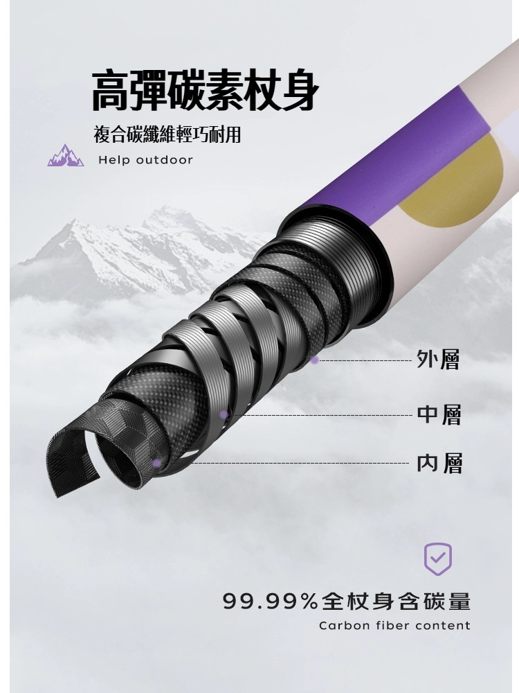 【Pioneer_開拓者】一入 新款旋彩碳纖維登山杖 山精靈3系 兩色任選