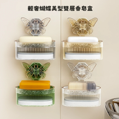 【A&R】北歐風輕奢蝴蝶美型雙層香皂盒 免打孔吸盤款 四色任選