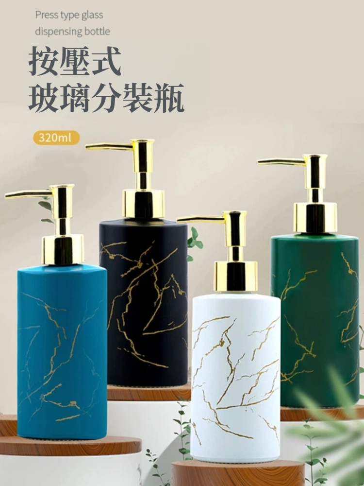 『產品優點』1. 加厚玻璃瓶身,穩固耐用嚴選加厚玻璃,質感細緻、不易變形,擺放穩定不易傾倒。2. 金屬按壓泵頭,順暢不回吸高品質金屬電鍍泵頭,按壓滑順、省力好出液,使用不沾手。3. 密封防漏設計,安心分裝螺紋瓶口+密封結構,有效防止滲漏,居家使用更安心。4. 320ML 大容量,減少補充次數