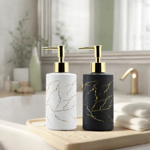 【A&R】北歐岩紋玻璃洗護按壓瓶 320ML 兩色任選 (輕奢風 洗手乳 洗髮精 沐浴乳 飯店分裝瓶)