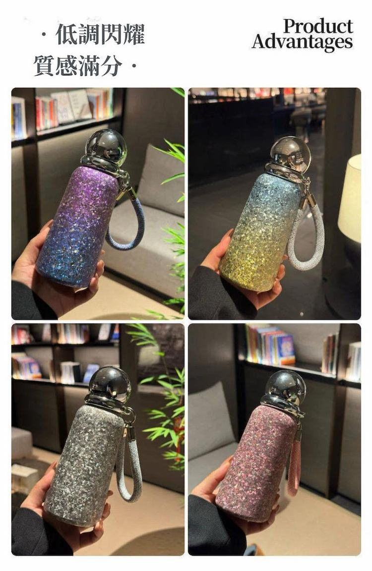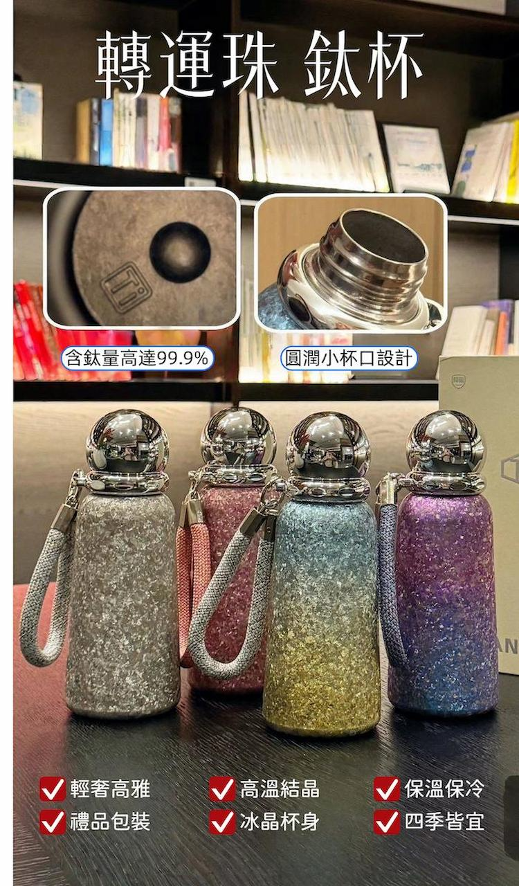 內容物:鈦晶 Ti 轉運流光保溫杯 x1+編織手提繩 ×1