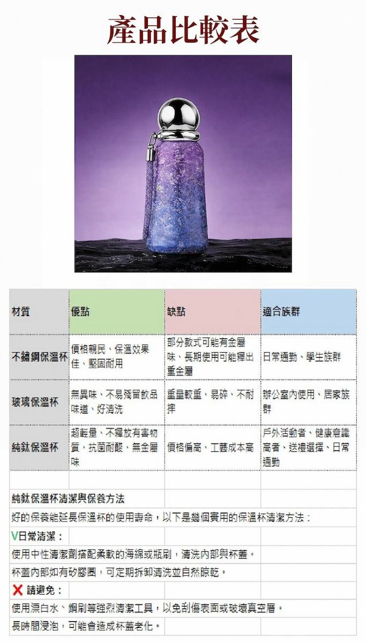 材質:上蓋-食品級鈦金屬/杯身-食品級鈦金屬