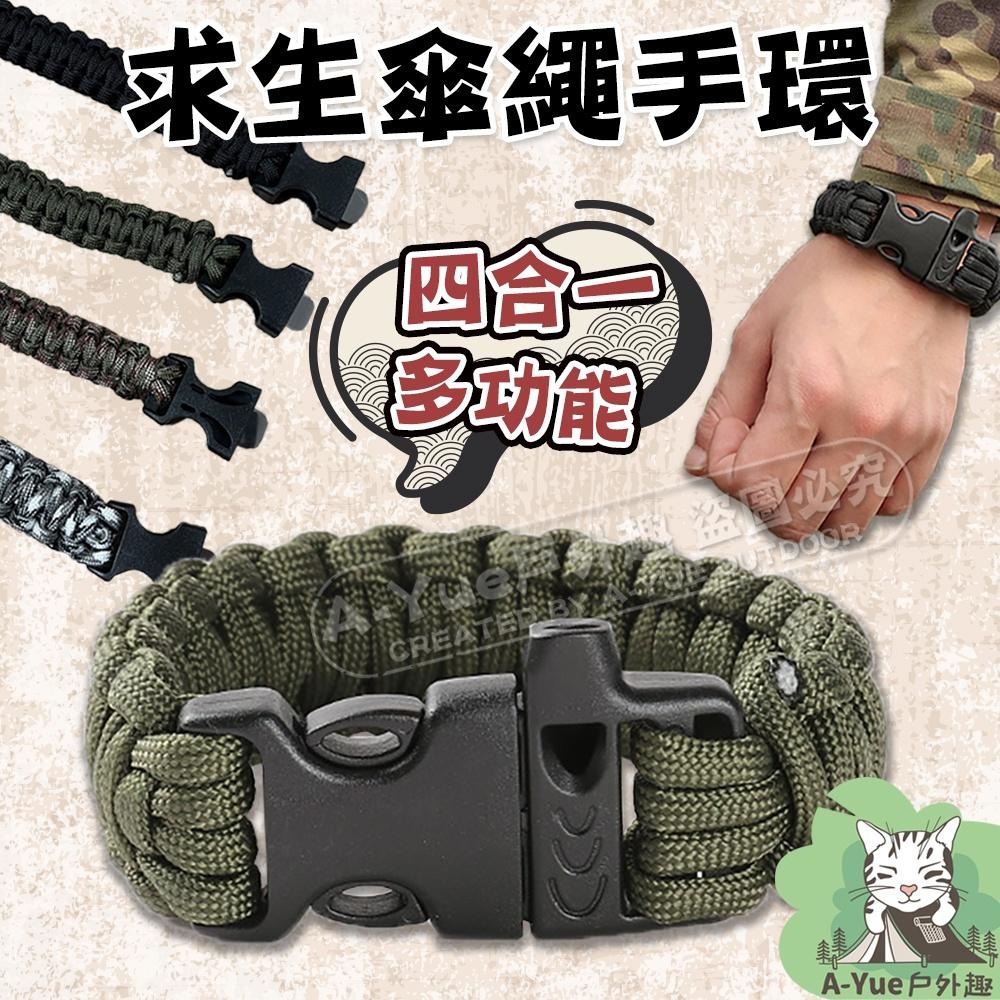 【A-Yue戶外趣】登山求生手環 野外求生手環 傘繩編織手環 野外戰術求生 傘繩 口哨 打火石 戶外生火 野營多功能工具