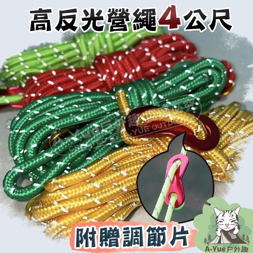 【A-Yue戶外趣】高反光營繩4m 夜晚警示繩 營繩調節片 天幕繩 帳篷繩 露營繩 反光繩 防風繩 傘繩 童軍繩 尼龍繩