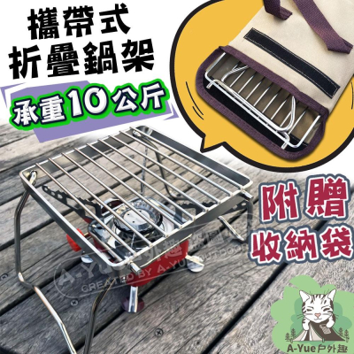 【A-Yue戶外趣】摺疊鍋架 登山爐架 卡式爐架 柴火架 野炊支架 爐架 不鏽鋼鍋架 露營 野營 小方爐 蜘蛛爐架 登山
