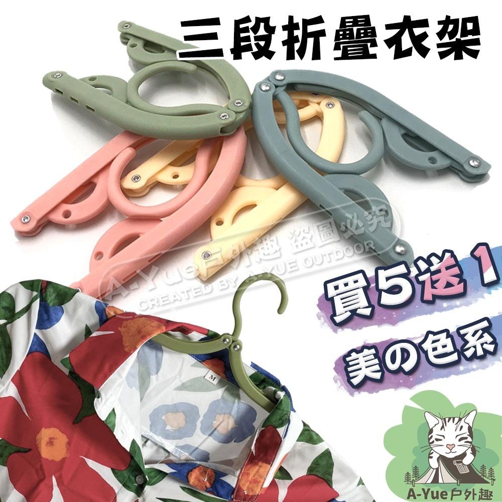 【A-Yue戶外趣】買5送1 三段折疊衣架 旅行衣架 露營曬衣架 防滑衣架 戶外晾衣 伸縮魔術衣架 摺疊衣架 戶外衣架掛