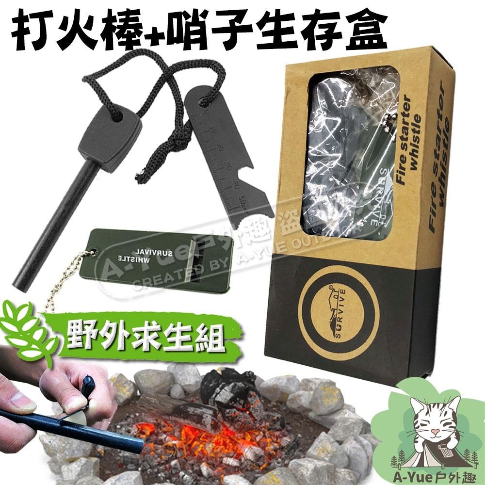 【A-Yue戶外趣】打火棒求生哨組 野外求生配件 鎂條打火石 救生哨 生火組合 登山裝備 野炊生火 野營露營 戶外生存