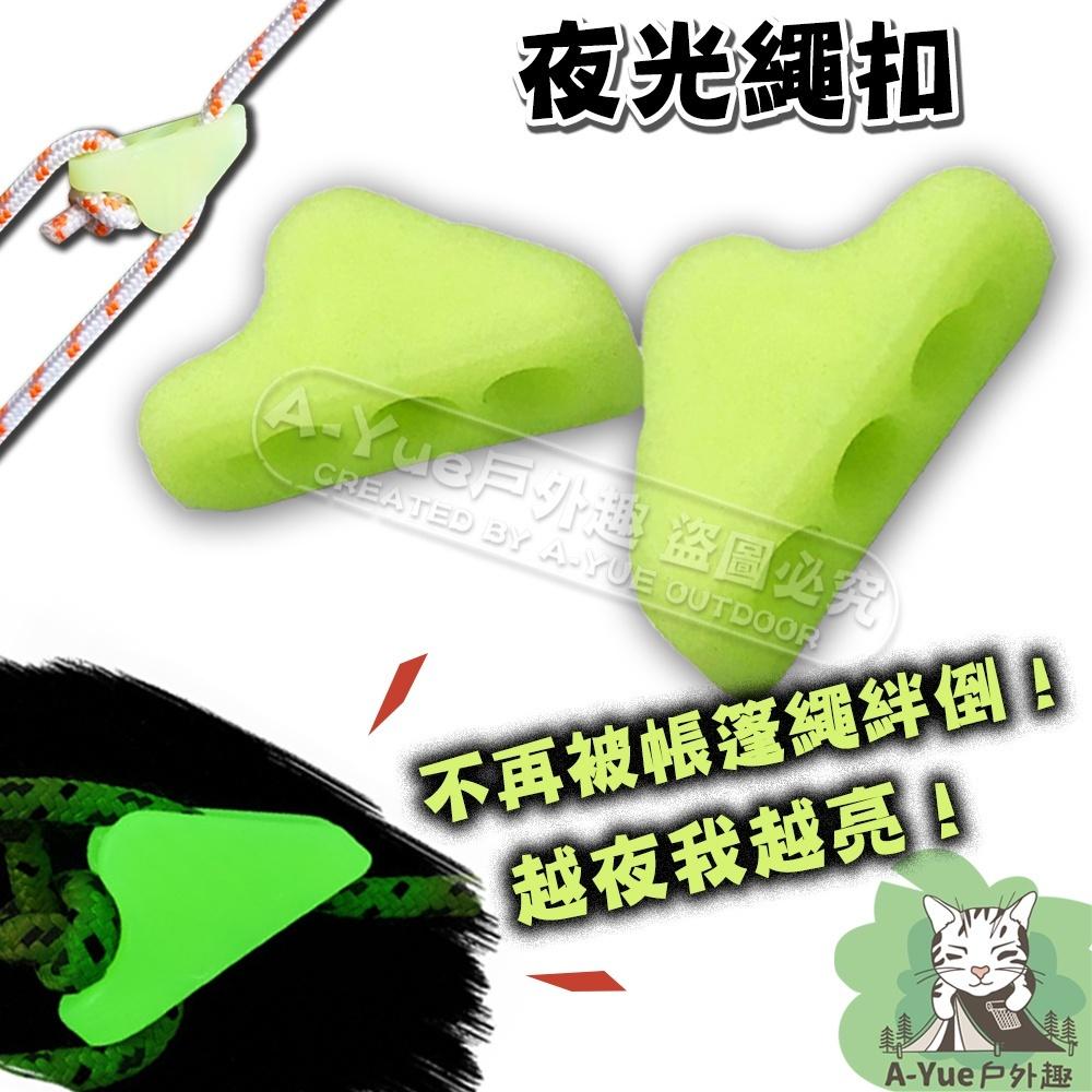 【A-Yue戶外趣】夜光營繩扣 營繩收緊 鬆緊調節片 夜間警示 防踢繩 帳篷拉繩 搭天幕 野營 露營野營 三孔調節片