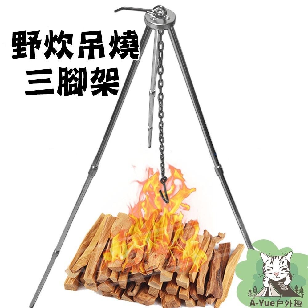 【A-Yue戶外趣】吊燒三腳架 篝火架 野炊腳架 烤肉架 露營 野營 戶外野炊 柴火爐 登山 攜帶式火爐 烤爐 燒柴支架