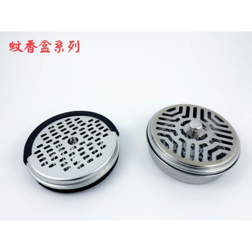 品名:附蓋式蚊香盒 規格:15x15x6cm 材質:不鏽鋼 產地:中國 品名:可攜式蚊香盒 規格:15x15x3cm 材質:鍍錫鐵+PP 產地:中國