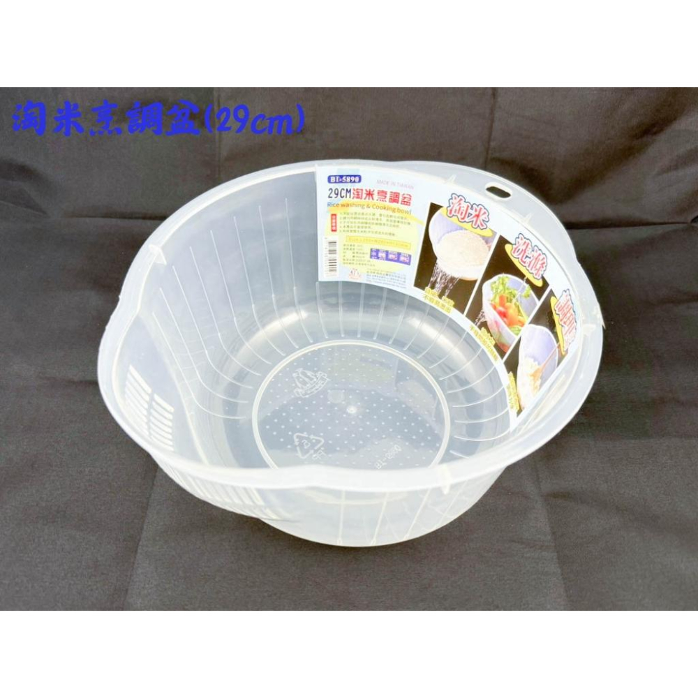商品名稱:淘米烹調盆 材質:聚丙烯 耐冷熱溫度:-20~100度C 容量:約2L 尺寸:29*26*13cm