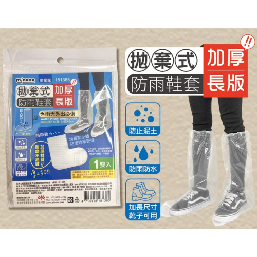 品名: 米諾諾拋棄式長版防雨鞋套 尺寸: 展開平放約長50x寬41cm(±5%)/支 包裝: 23x16.5x1.5cm