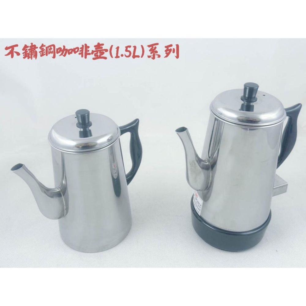 品名:不鏽鋼咖啡壺(1.5L)一般版 材質:不鏽鋼 規格:約13x18x21 公分 容量:約 1.5公升 產地:台灣 不可直接放置火爐上加熱!! 品名:不鏽鋼咖啡壺(1.5L)電熱版 材質:不鏽鋼 規格:約13x18x25公分 容量:約 1.5公升 產地:台灣