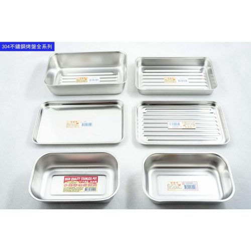 商品名稱:不鏽鋼多用途烤盤(波浪大淺) 商品材質:304不鏽鋼 商品尺寸:26*15.5*3cm 商品名稱:不鏽鋼多用途烤盤(中深型) 商品材質:304不鏽鋼 商品尺寸:19.8*12.4*5cm 商品名稱:不鏽鋼多用途烤盤(大深型) 商品材質:304不鏽鋼 商品尺寸:26*15.5*6cm 商品名稱:蝴蝶牌不鏽鋼烤盤(中深型) 商品材質:304不銹鋼 商品尺寸:19.8x12.4x5cm 商品名稱:蝴蝶牌不鏽鋼烤盤(淺型) 商品材質:304不銹鋼 商品尺寸:24.5x15.3x1.5cm 商品名稱:蝴蝶牌不鏽鋼波浪烤盤(深型) 商品材質:304不銹鋼 商品尺寸:24.5*15.3*3cm 商品名稱:蝴蝶牌不鏽鋼波浪烤盤(加深) 商品材質:304不銹鋼 商品尺寸:24.5*15.3*5.7cm 商品名稱:蝴蝶牌不鏽鋼波浪烤盤(淺) 商品材質:304不銹鋼 商品尺寸:24.5*15.3*1.5cm