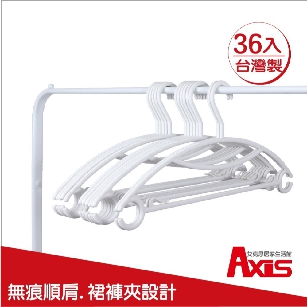 《艾克思》台灣製無痕順肩多功能塑膠衣架_36入