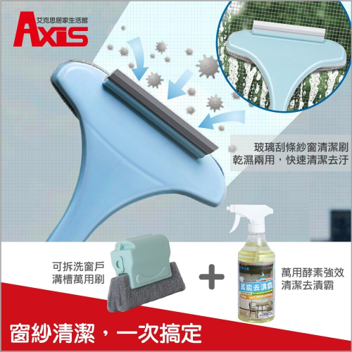 《艾克思》Axis紗窗清潔刷1入+Axis窗戶溝槽清潔器1入+SUN SIN萬能去漬霸500ml