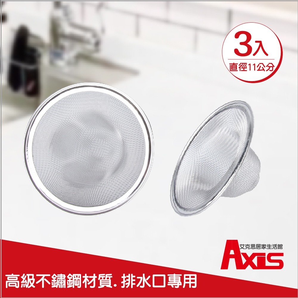 《艾克思》廚房水槽衛浴不鏽鋼地板排水孔濾網_直徑11公分_3入