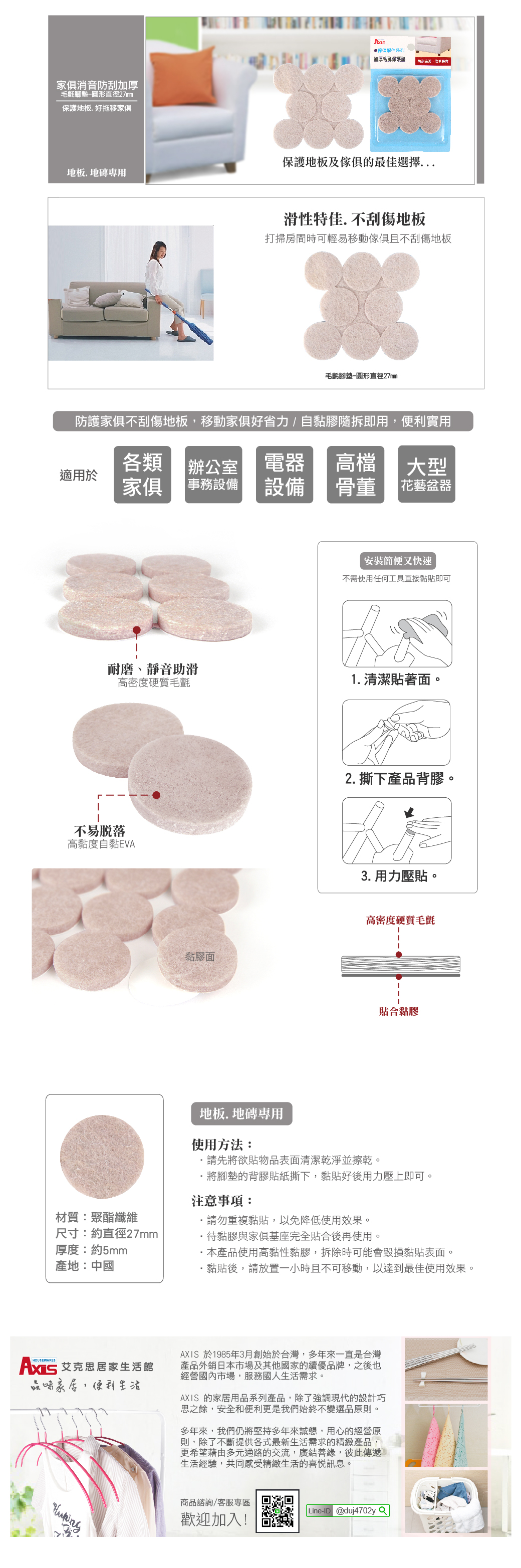 #保護 #沙發 #消音 #防刮 #毛氈 #腳墊 #辦公室 #居家 #生活 #方便 #地板 #地磚 #AXIS #艾克思