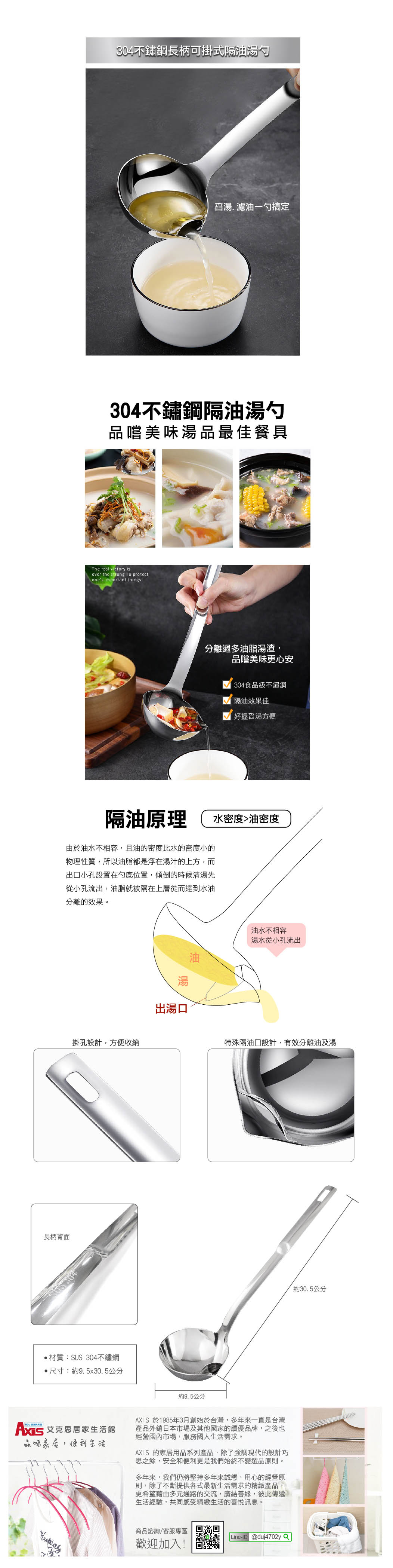 《艾克思》304不鏽鋼長柄可掛式隔油湯勺_1入