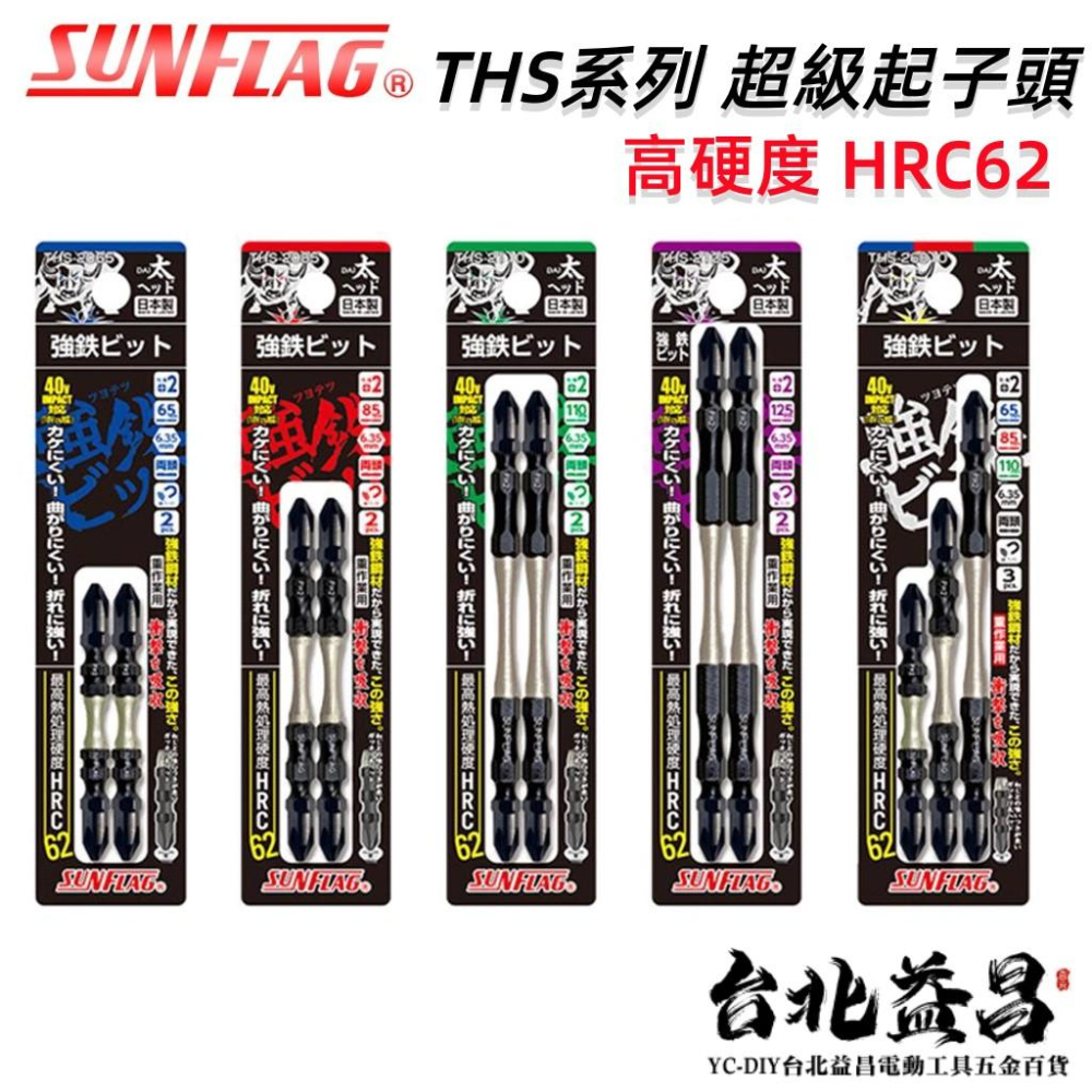 【台北益昌】日本熱銷 SUNFLAG 新龜 衝擊 起子頭 HRC62 強鐵鋼材 PH2 65mm 85mm 110mm
