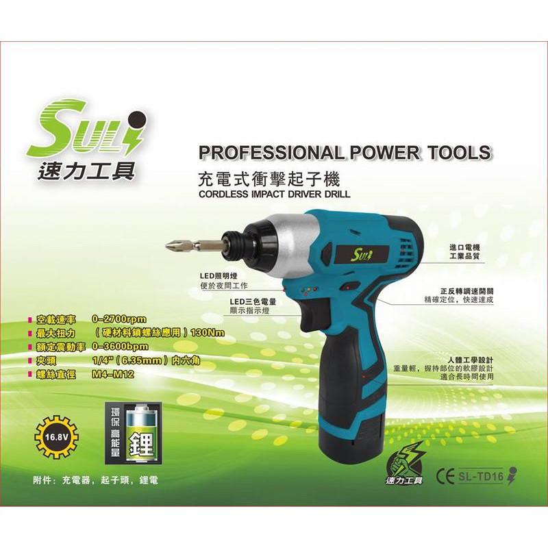 【台北益昌】SULi 速力 SL-TD16 16.8V 鋰電 充電式 衝擊起子機 電鑽