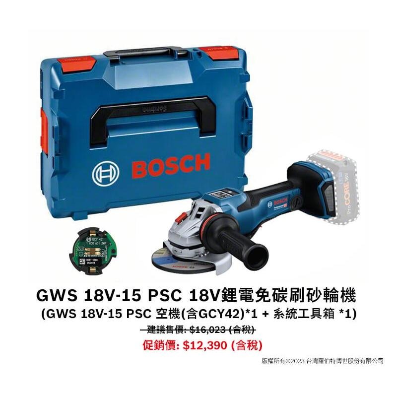 【台北益昌】 德國 Bosch GWS 18V-15 PSC 充電式無刷 BiTurbo 砂輪機 (槳氏開關) 強大效能
