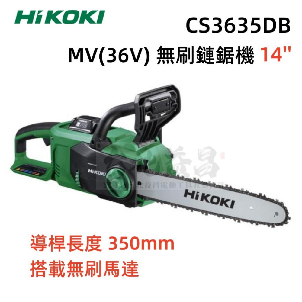 【台北益昌】HIKOKI CS3635DB MV(36V) 無刷 鏈鋸機 14'' 充電式 鋰電 鋰電鋸