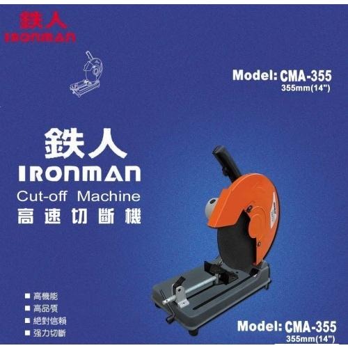 【台北益昌】鐵人牌 IRONMAN 14吋 高速 切斷機 CMA-355II 專業用 鐵材 切割作業