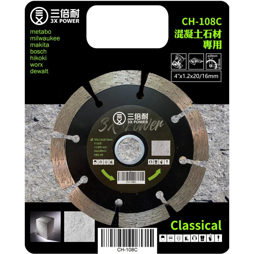 【台北益昌】三倍耐 切!! 美德寶 石材切片 混凝土 CH-108C砂輪片 4" 4英寸 105×1.2×20mm