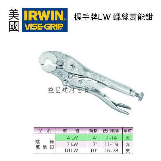 【台北益昌】美國 IRWIN 握手牌 VISE-GRIP 4LW 7LW 10LW 螺絲萬能鉗 品質保證耐用!