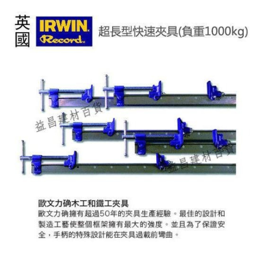 【台北益昌】握手牌 IRWIN Record 英國 力确牌 超長型快速夾具 負重1000kg 各規格可參考 品質好!