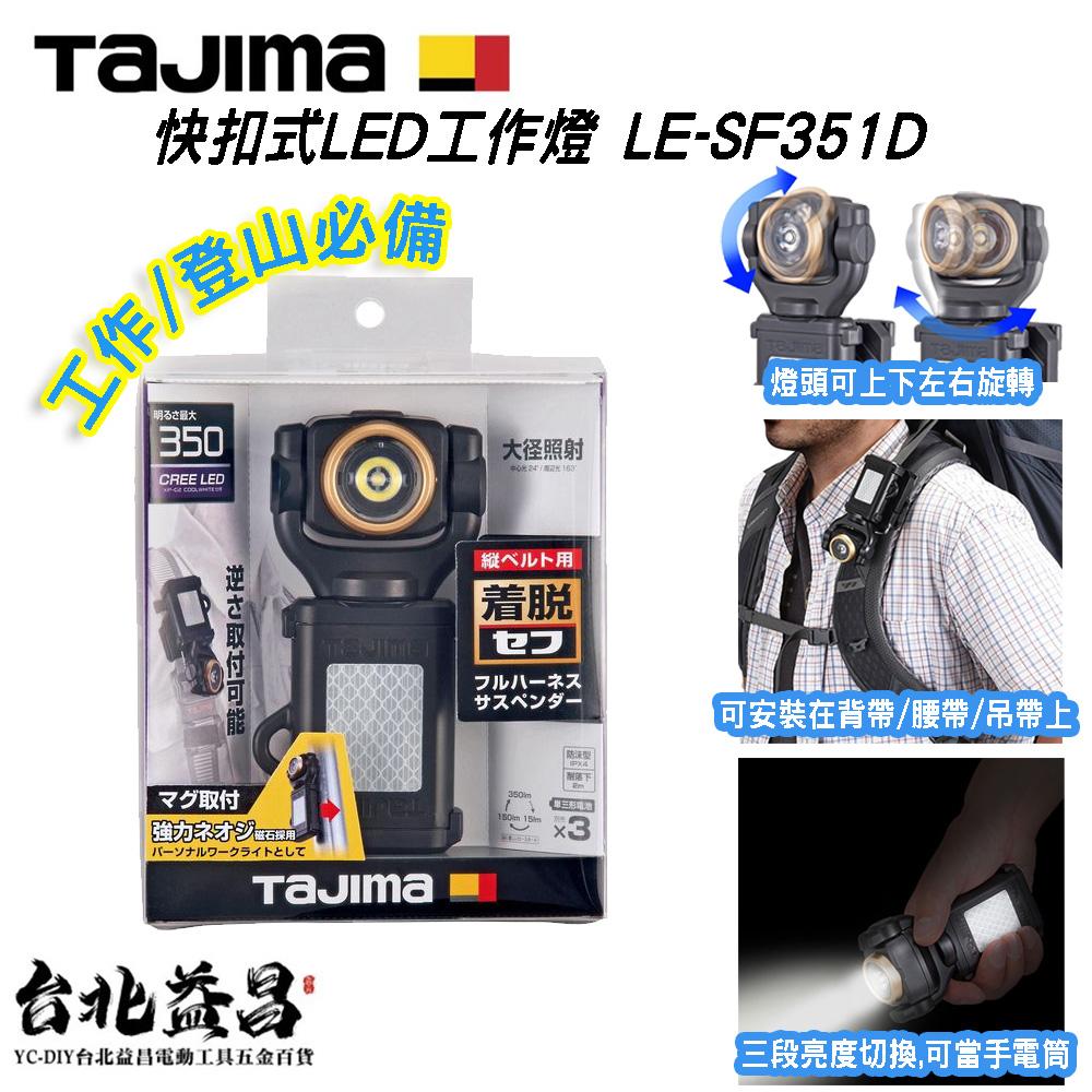 【台北益昌】TAJIMA 田島 快扣式 LED 工作燈 登山 手電筒 附強力磁鐵 LE-SF351D