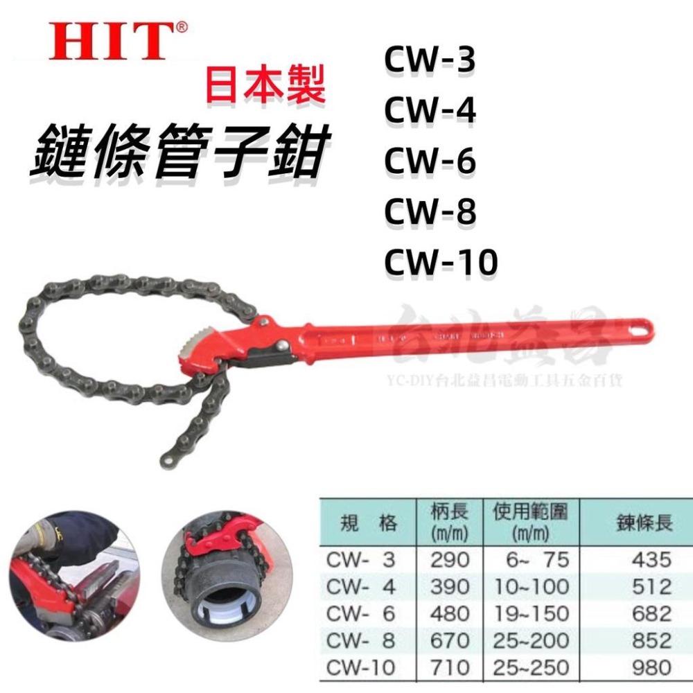 【台北益昌】日本 HIT CW-3 CW-4 CW-6 CW-8 CW-10 鏈條管子鉗 鏈鉗 鏈條鉗