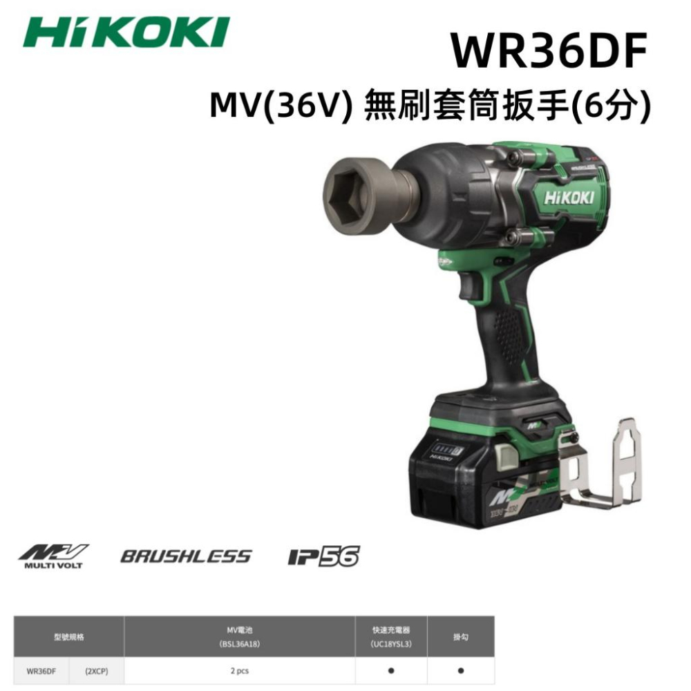 【台北益昌】HIKOKI WR36DF MV 36V 高扭力 無刷 套筒 扳手 (6分頭)
