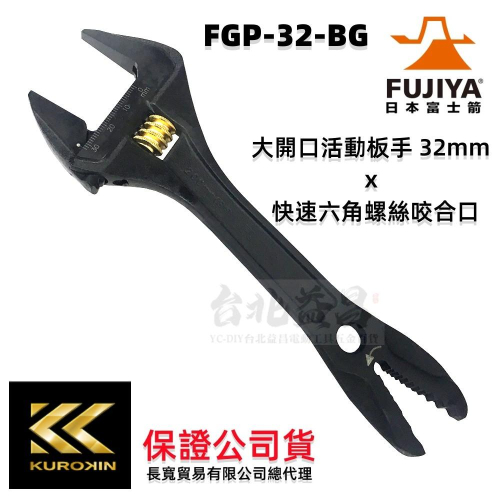 【台北益昌】FUJIYA 富士箭 黑金系列 大開口活動板手 32mm x 快速六角螺絲咬合口 FGP-32-BG