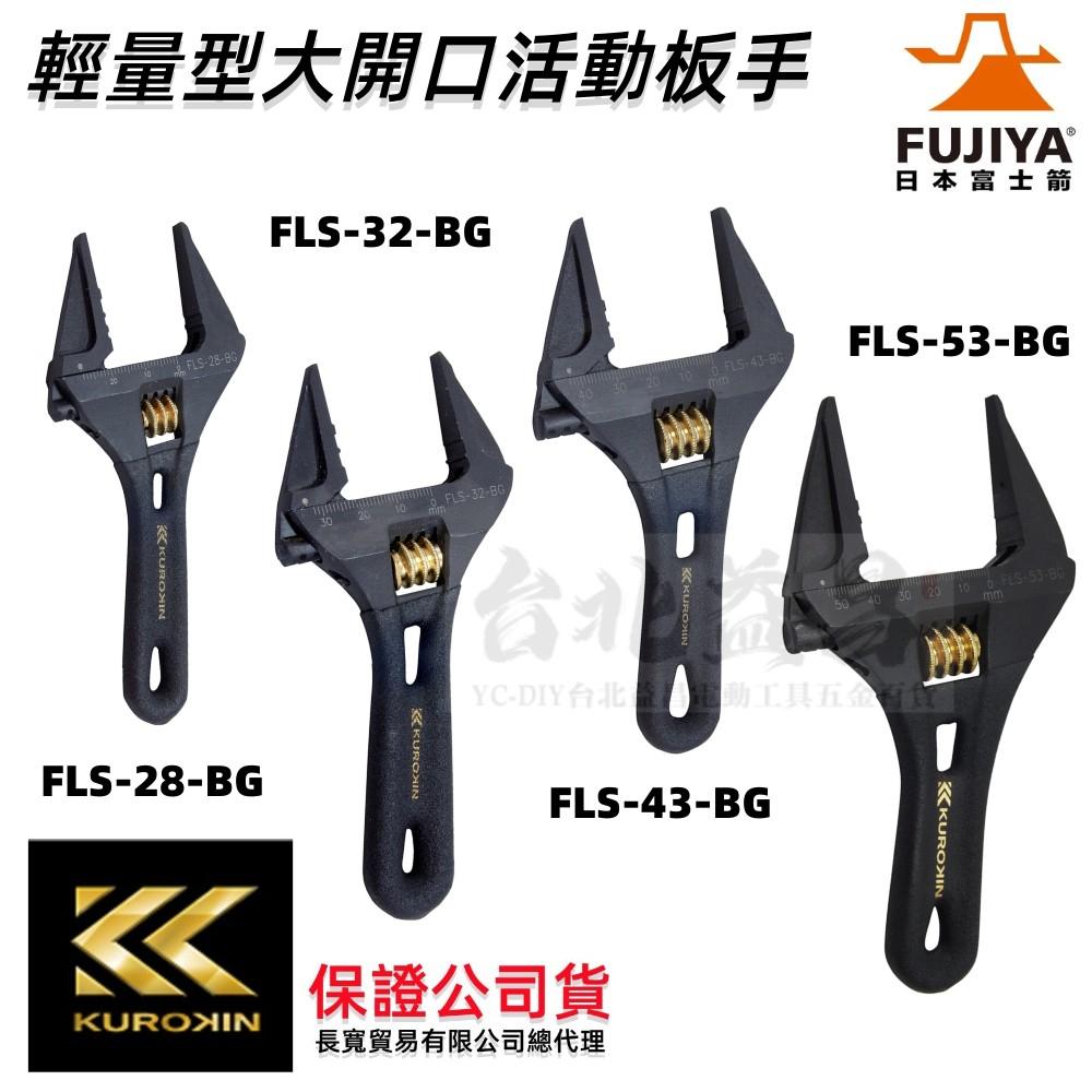 【台北益昌】 FUJIYA 富士箭 FLS-28-BG 32/43/53 黑金系列 輕量 薄型 活動板手 大開口