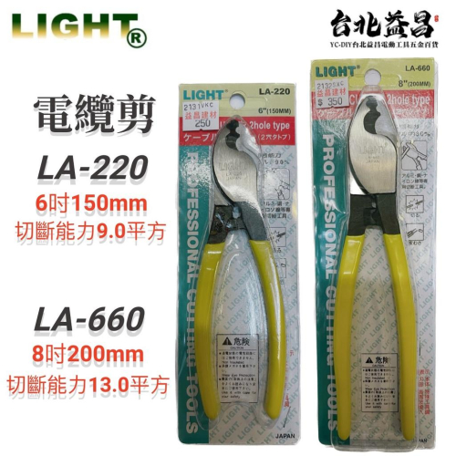 【台北益昌】 LIGHT LA-220 6吋150mm LA-660 8吋200mm 電纜 剪 能力 9.0/13.0