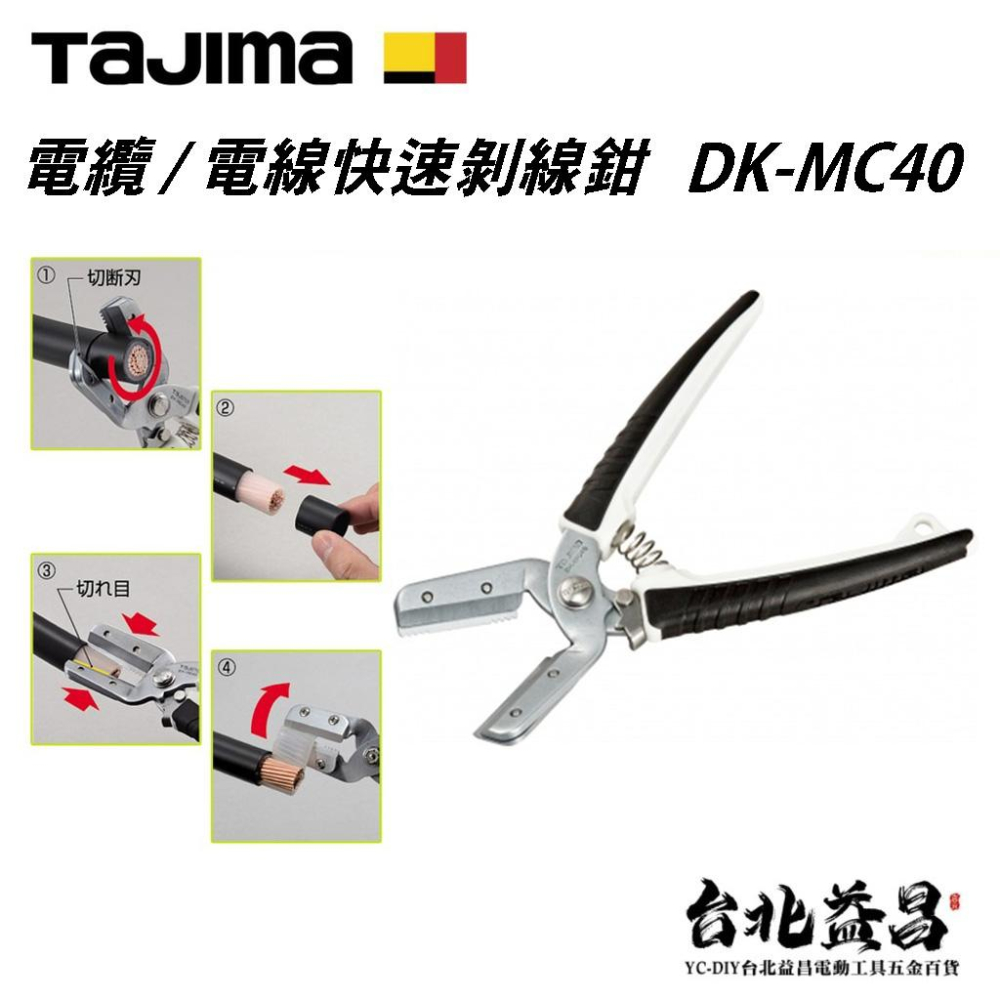 【台北益昌】TAJIMA 田島 電纜 電線 快速剝線鉗 剝皮剪 剝線剪刀 DK-MC40