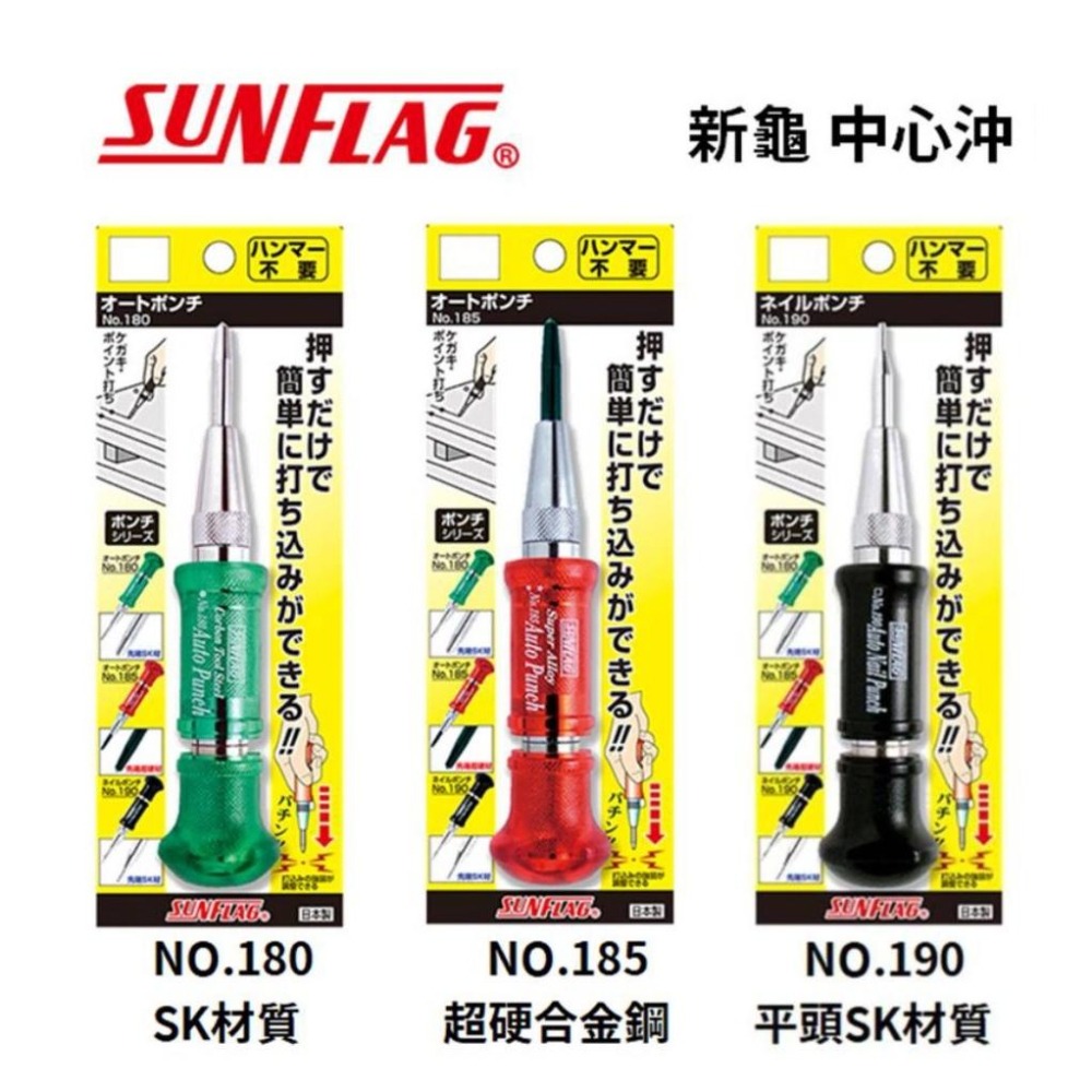 【台北益昌】日本 SUNFLAG 新龜 超硬 自動中心沖 NO.180 185 190 SK材質 合金鋼 中心衝