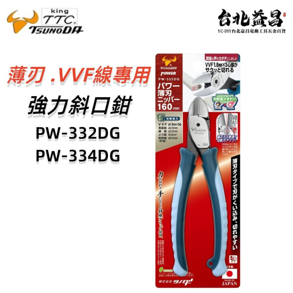 【台北益昌】日本 角田 TTC PW-332DG PW-334DG 薄刃 VVF線專用 強力 斜口鉗 尖嘴鉗