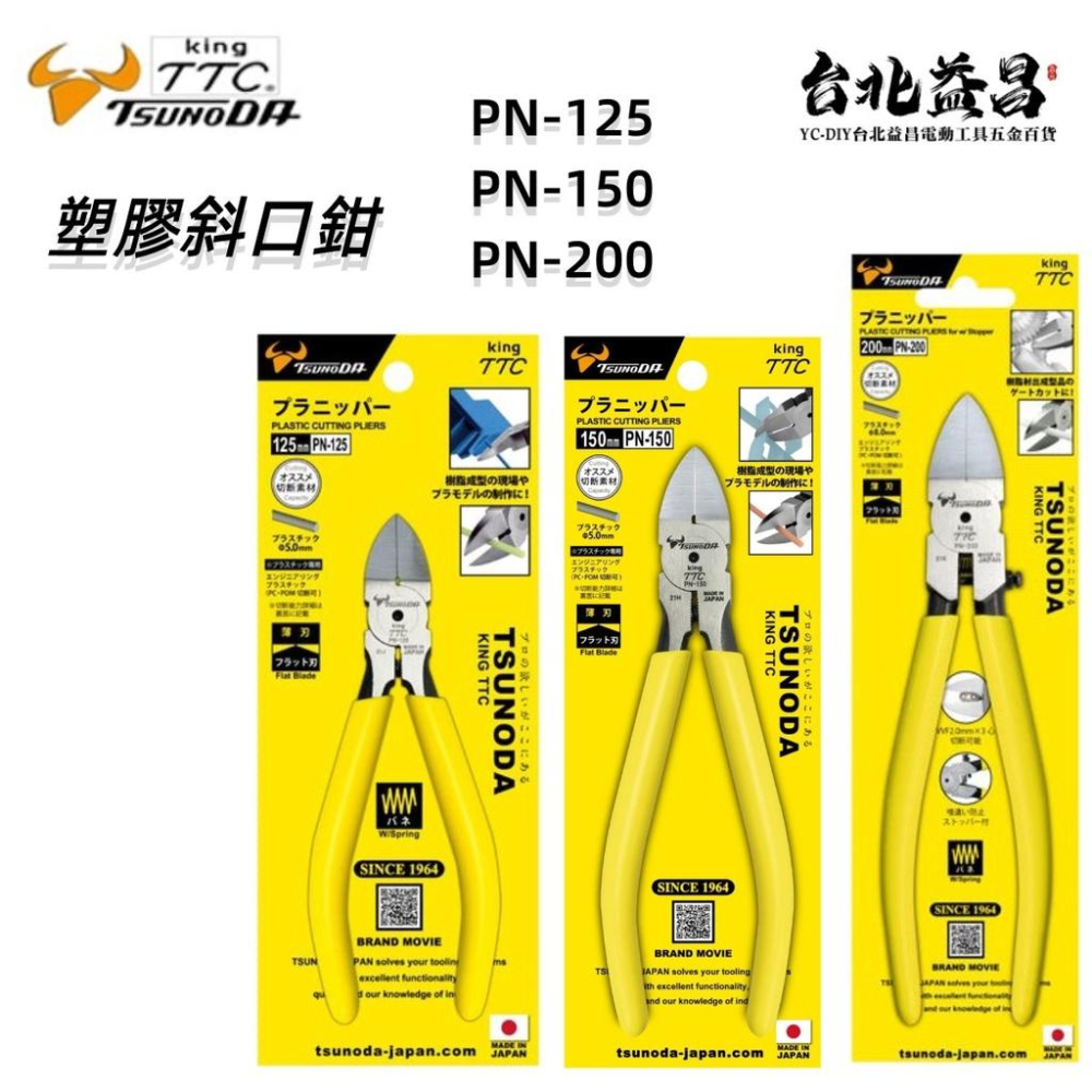 【台北益昌】㊣日本製造㊣ 角田 TTC 塑膠 電子 斜口鉗 PN-125 PN-150 PN-200 彈簧式