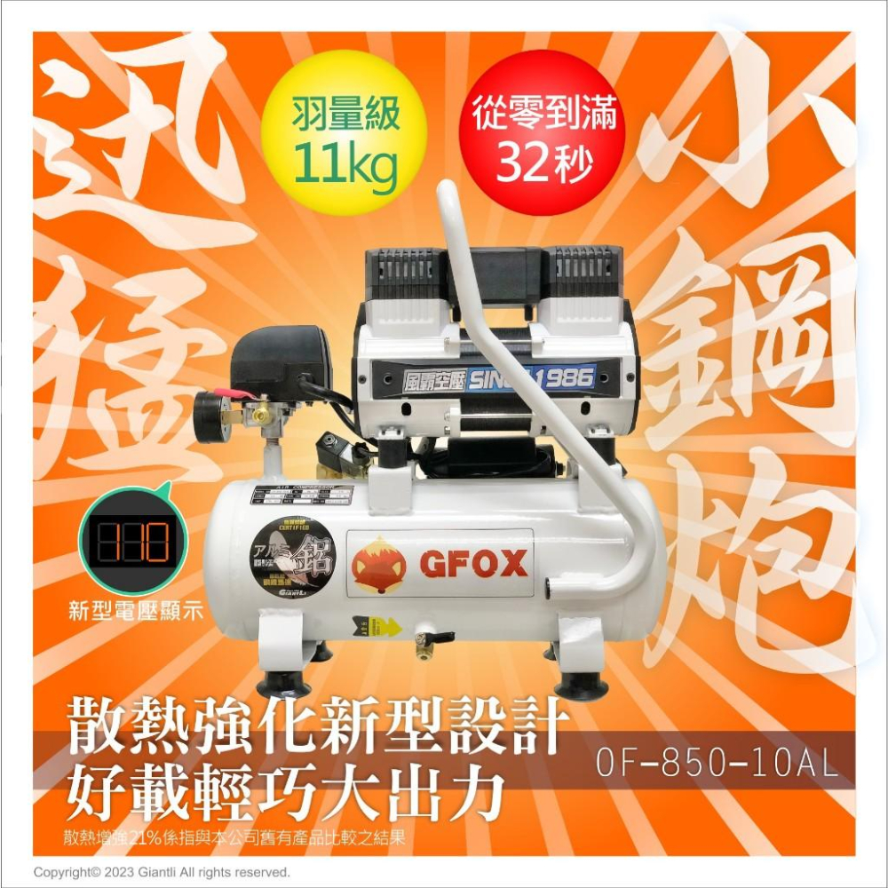 台北益昌贈風管+風槍2.5HP 10L 超輕量 鋁合金 全銅線 風霸 GFOX 無油式 快速型 空壓機